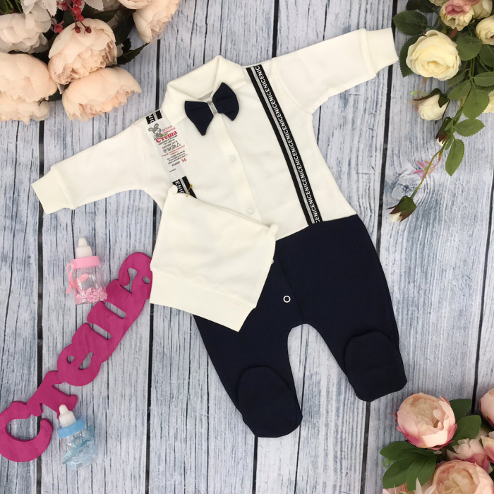 Комбинезон из интерлока "Подтяжки" цвет темно-синий