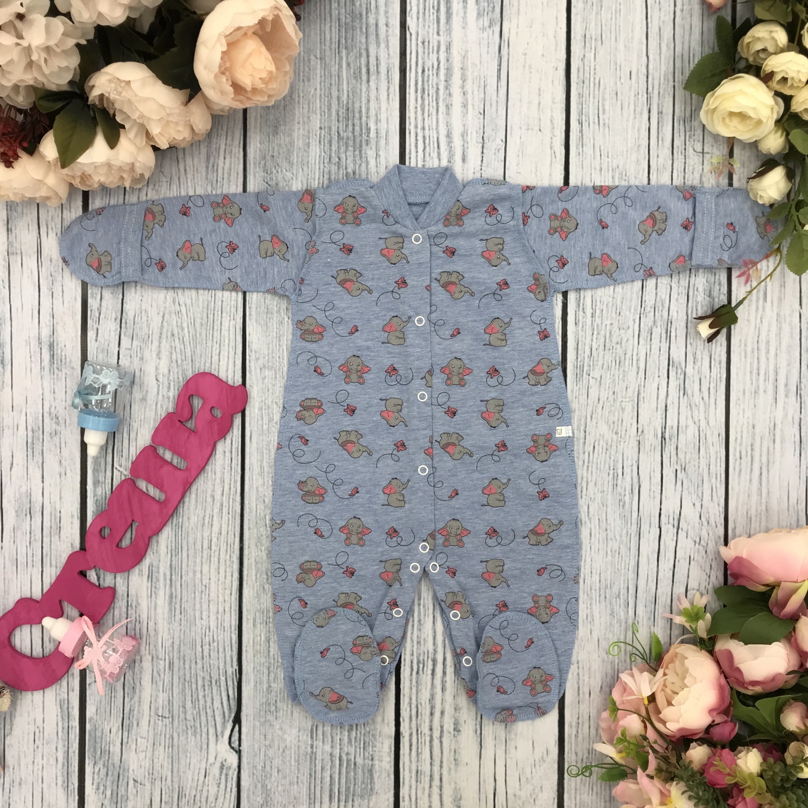 Теги: Купить оптом комбинезон с рисунком. 271-Г. Комбинезон, хлопок 100 % кулирка 56,62,68,74,80, голубой цена,отзывы официальный сайт "Стеша Троицк"