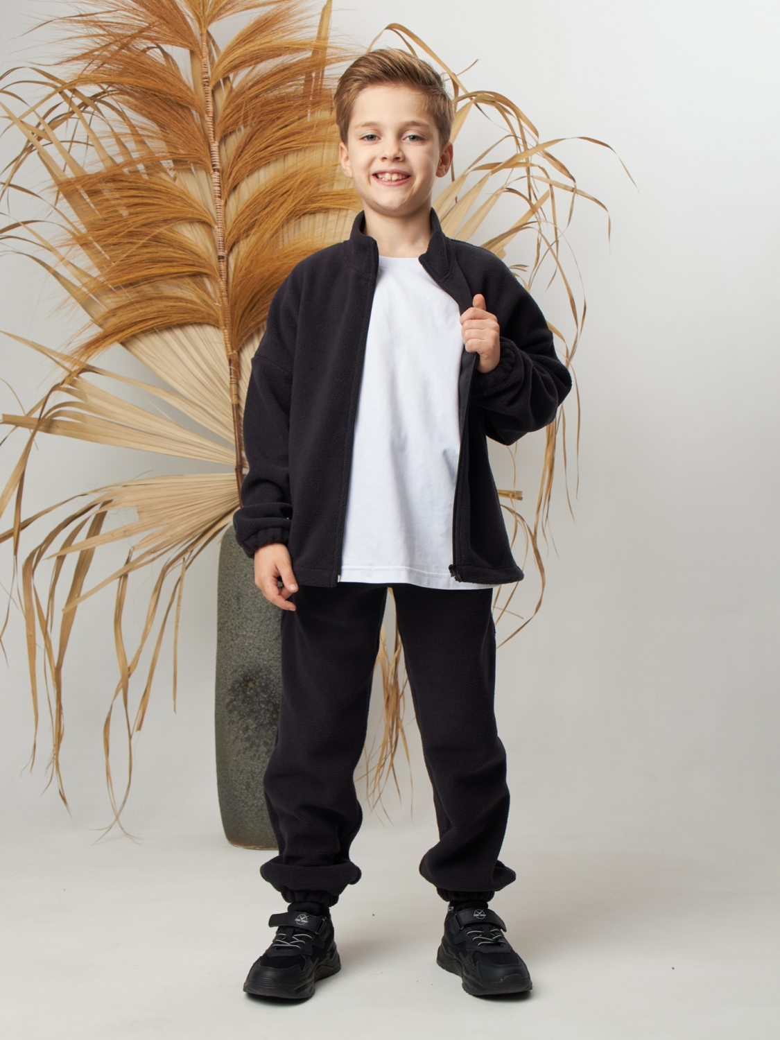 Теги: Детский костюм из флиса оптом . 331. Костюм детский (Брюки+Толстовка), темно серый, 100% полиэстер, р. 122,128,134,140 цена,отзывы официальный сайт "Стеша Троицк"