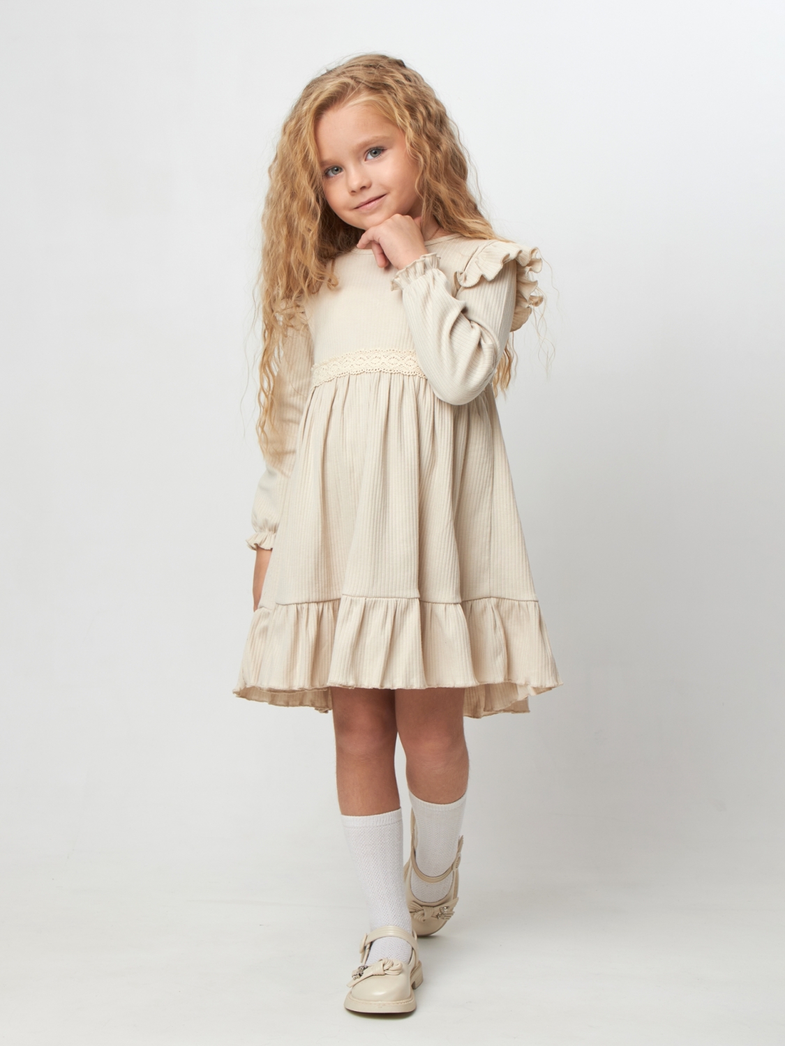 Теги: Платья детские из мулина оптом. 332. Платье детское из лапши, хлопок 100%, бежевое, р. 98,104,110,116 цена,отзывы официальный сайт "Стеша Троицк"